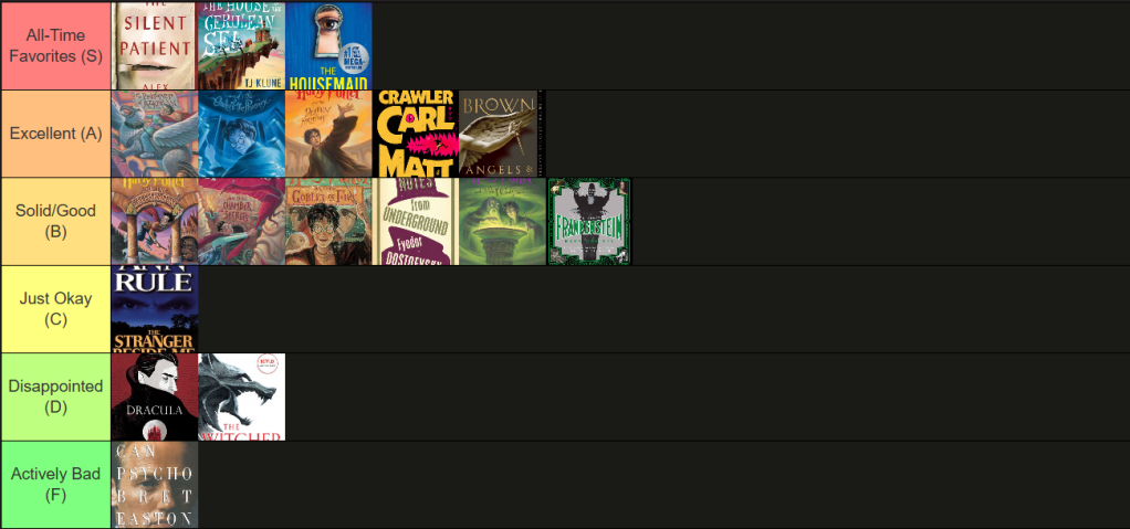 So, shall we get started? I will list them in order of which I read them, so this is not a ranking. The tier ranking and recognition will come after.